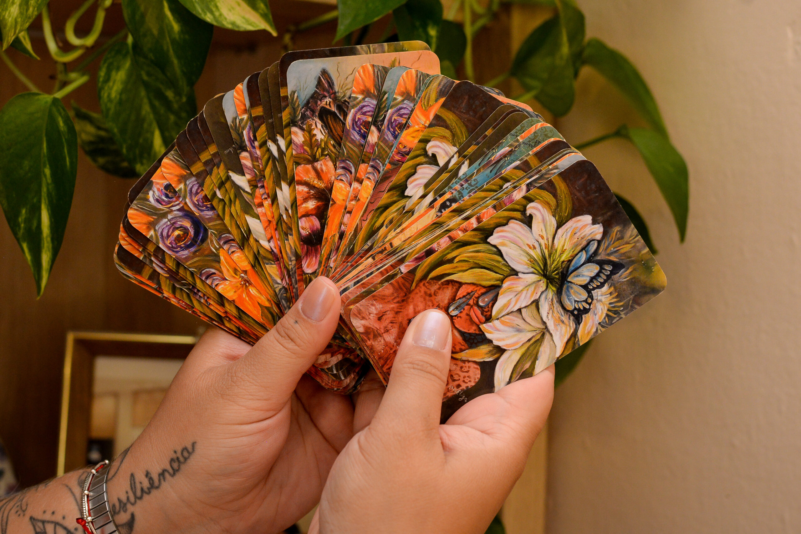 Um oráculo profundo com 71 mensagens voltadas para a cura da ancestralidade feminina, ressignificação de dores emocionais e liberação de padrões que se repetem no sistema familiar.
